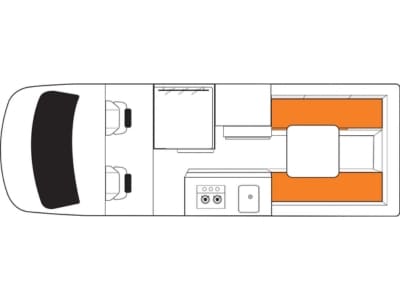 Length: 5.94m Note. Images and beds layouts are indicative only. Actual campervan may vary. Layout cannot be requested. |